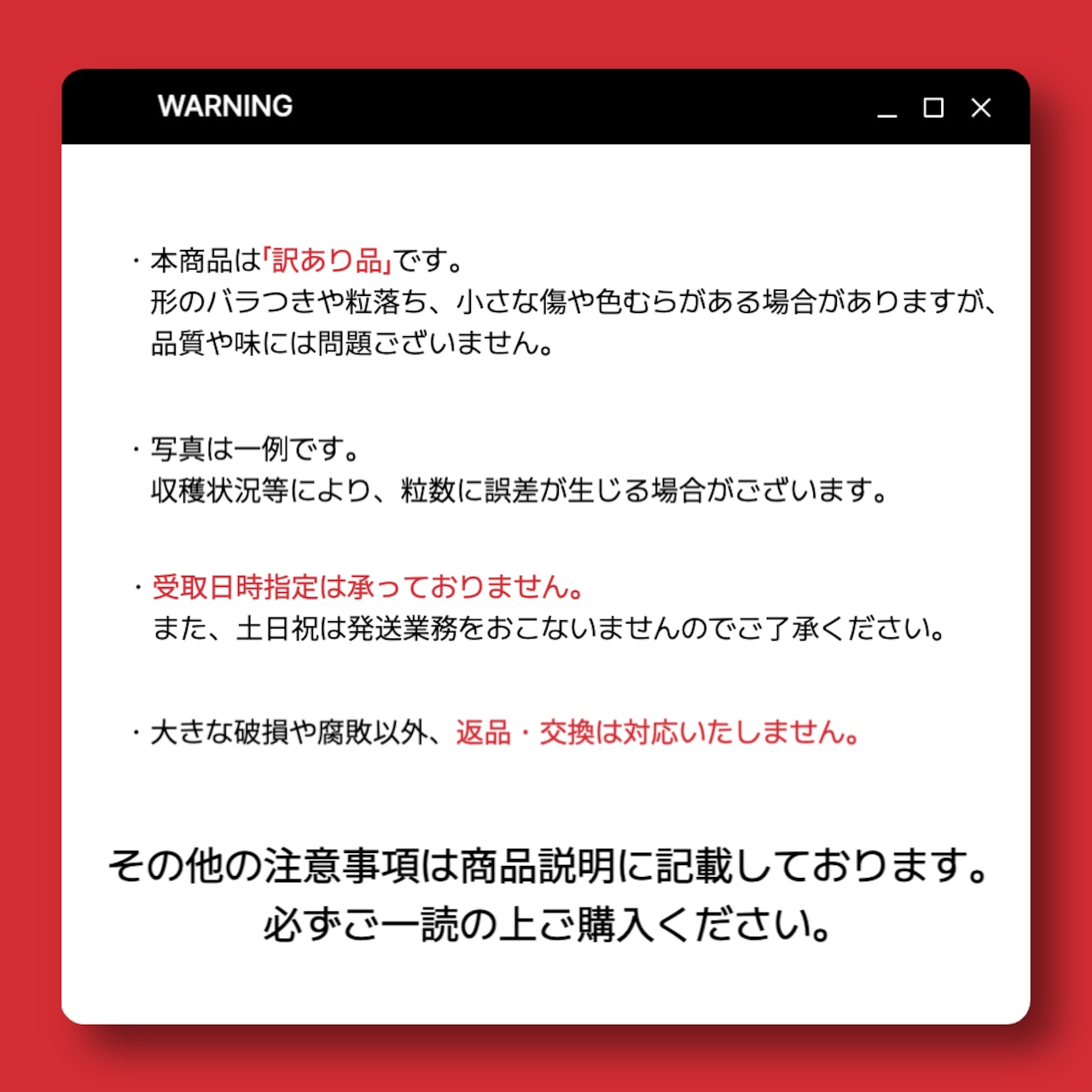 ・訳あり品のため、粒が小さかったり、粒落ち・房の不揃い・多少の傷や着色ムラがございます。